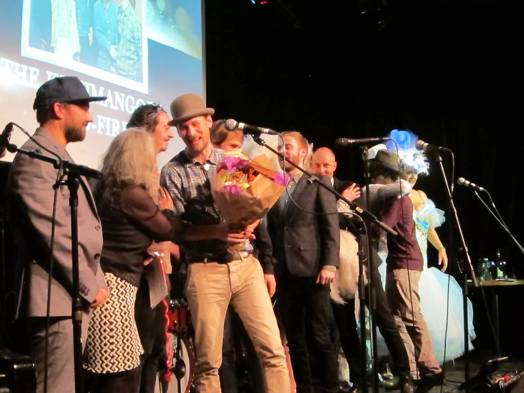 Hvad der derimod mødte mig var et halvbizart show i form af to konferenciers, der gav den i aparte fremtoning og med vittigheder af den slags, der kun virker i overrislet selskab. Hvorfor et hjerteligt bifald skyllede op mod scenen. Hvor man dog stadig godt kunne have givet selve prismodtagelserne en tand mere, når vi nu ikke var i Hollywood og havde et ur, der begynder at tælle ned, når takketalen bliver for lang. I den danske version, anno 2014 lokation Jazzhouse, var det som om, det blev for cheesy at takke venner og familie, hvorfor det var, som prismodtagelserne nærmest havde karakter af noget der skulle overstås. Det kan man godt forbedre til næste år.