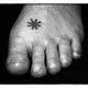 – Den stjerne, der er på "HIP" - sådan en skulle vi alle sammen have haft. Eik havde den, og jeg fik den også. Den blev lavet oppe i Peter Severins atelier – ham der også malede mine trommer - om vinteren med tuschflaske og sikkerhedsnål. Han stak den ned og ned igen, og det gjorde pisse ondt. Til sidst blev foden helt lam, og tatoveringen har holdt sig helt eventyrligt. Det er den bestjernede fod.