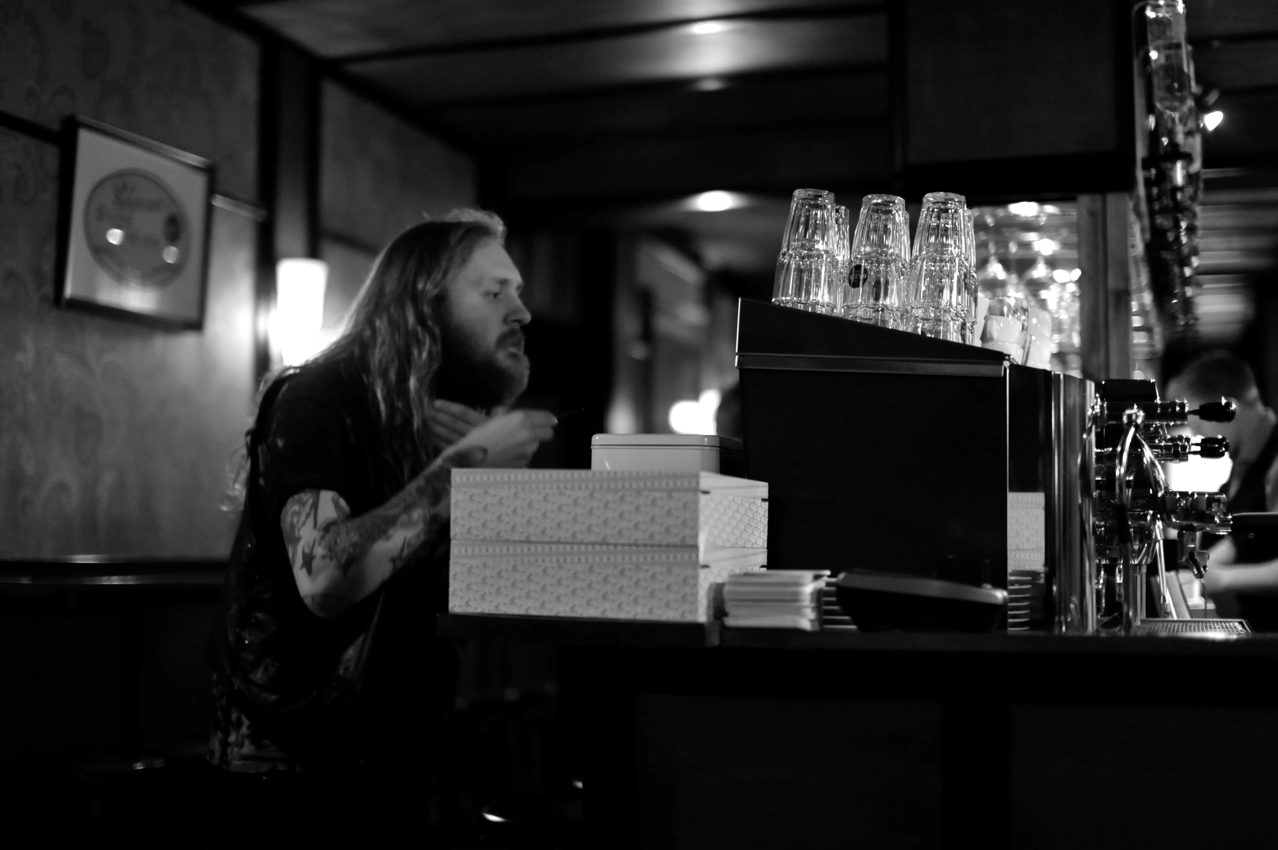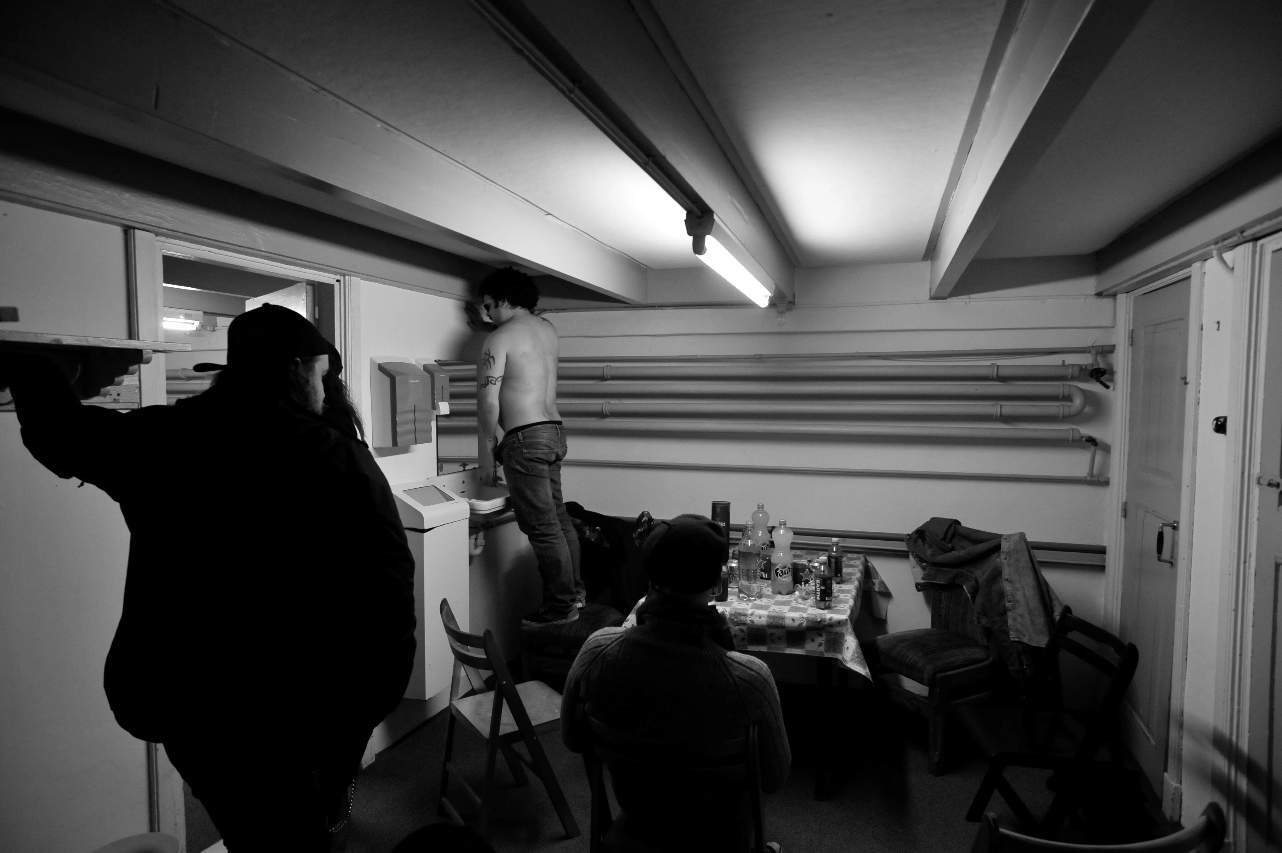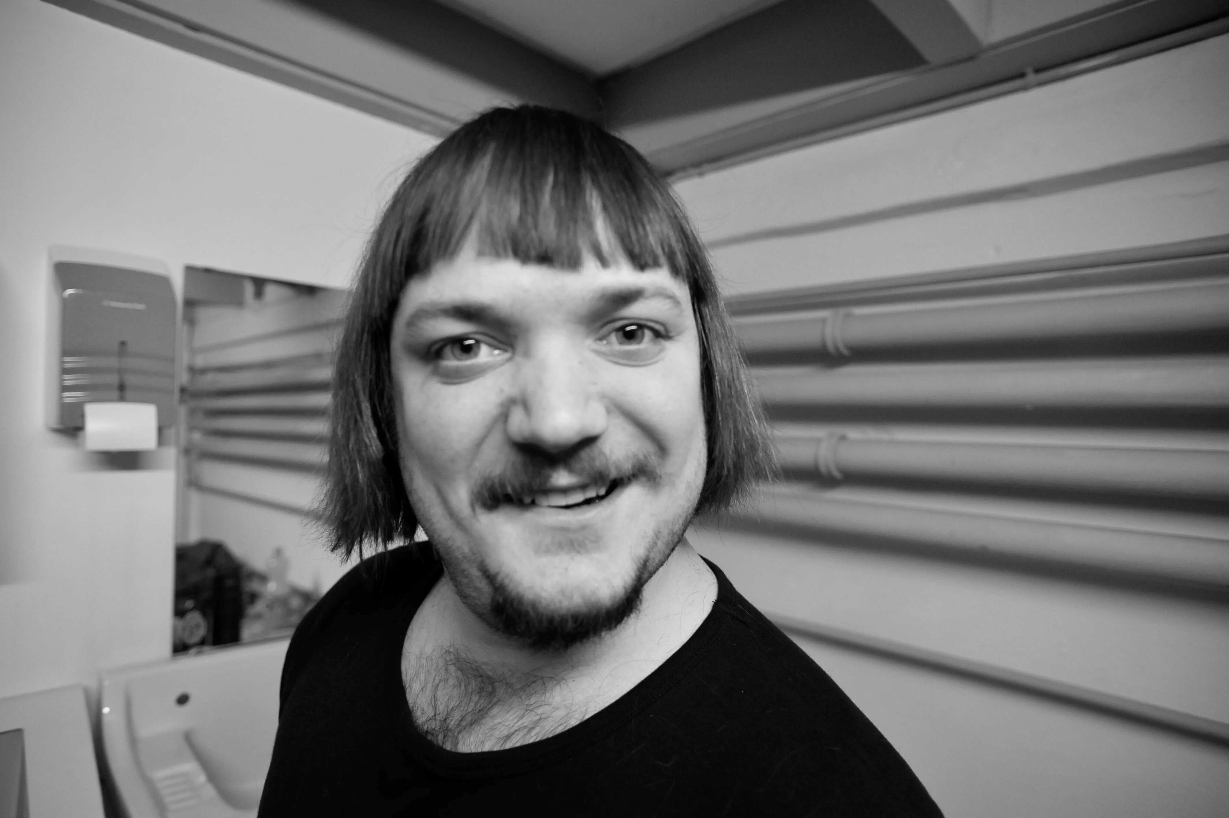 Under en skøn, skøn lydprøve foran ca 21 mennesker blev vi en smule smånervøse, da forrige aftens venue var packed allerede før showstart. Derfor valgte vi naturligvis, for at dulme den spirrende nervøsitet, at give vores elskede trommeslager en prins Valiant-frisure umiddelbart, før vi gik på scenen. Hold kæft hvor vi skreg af grin over det.