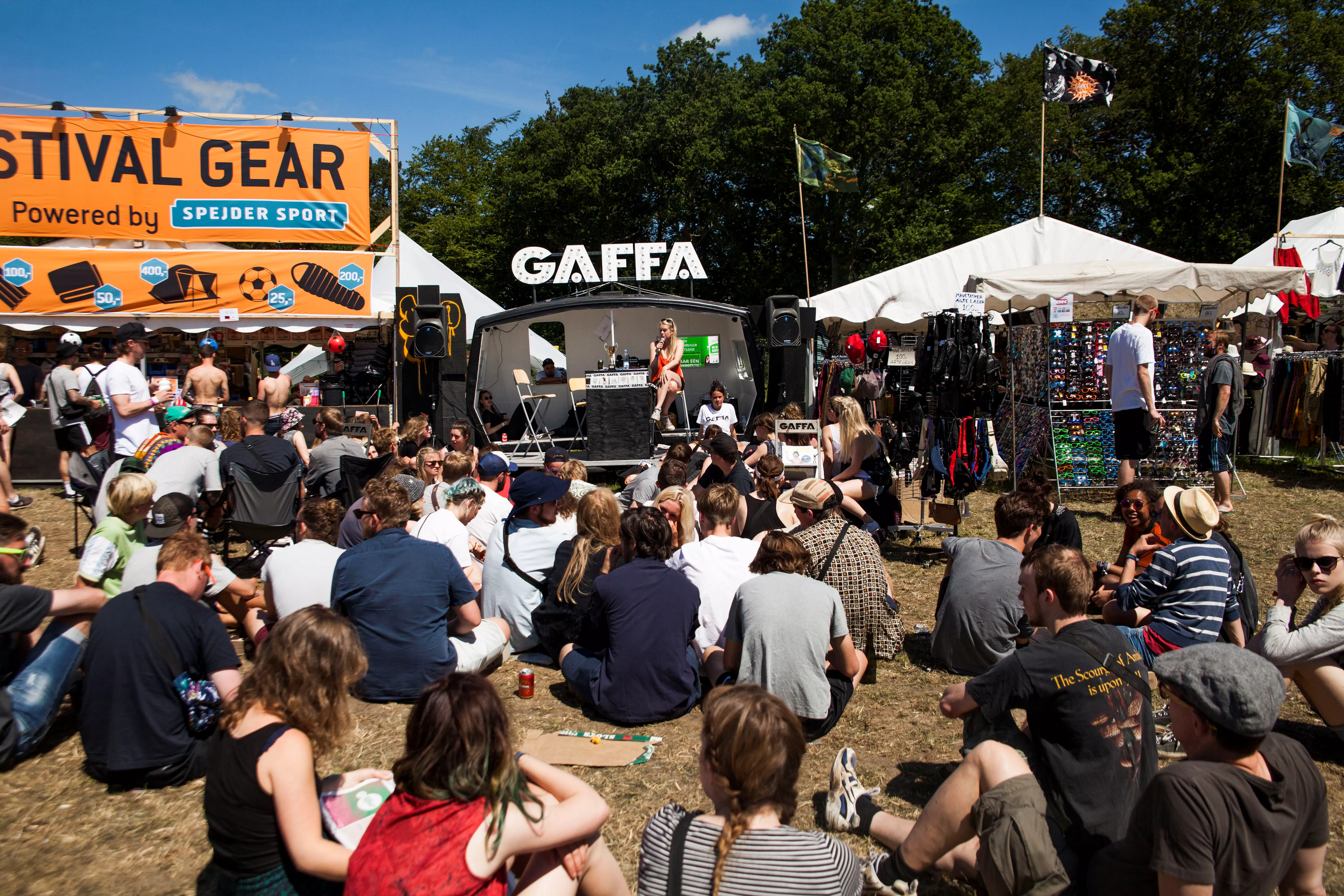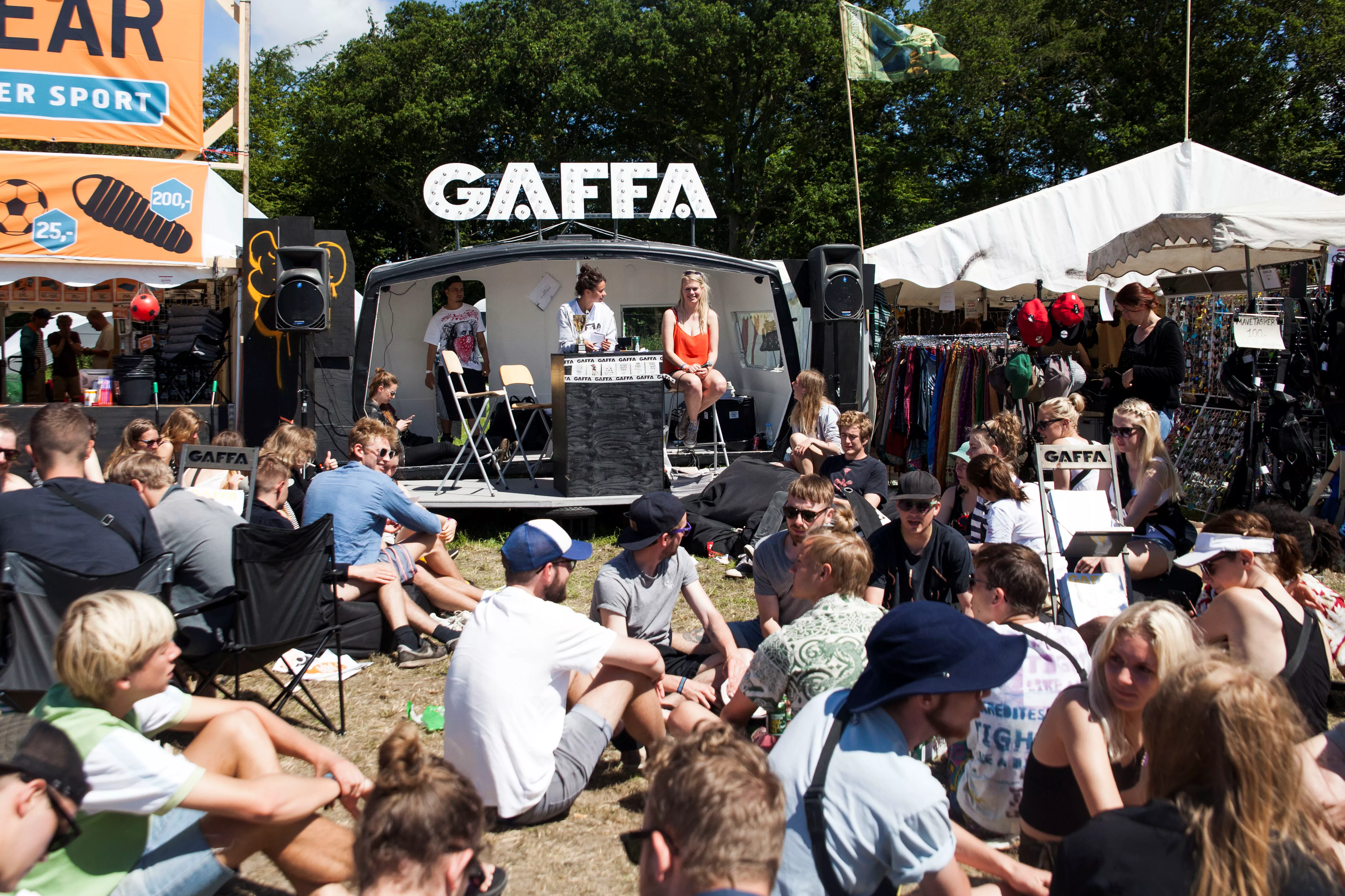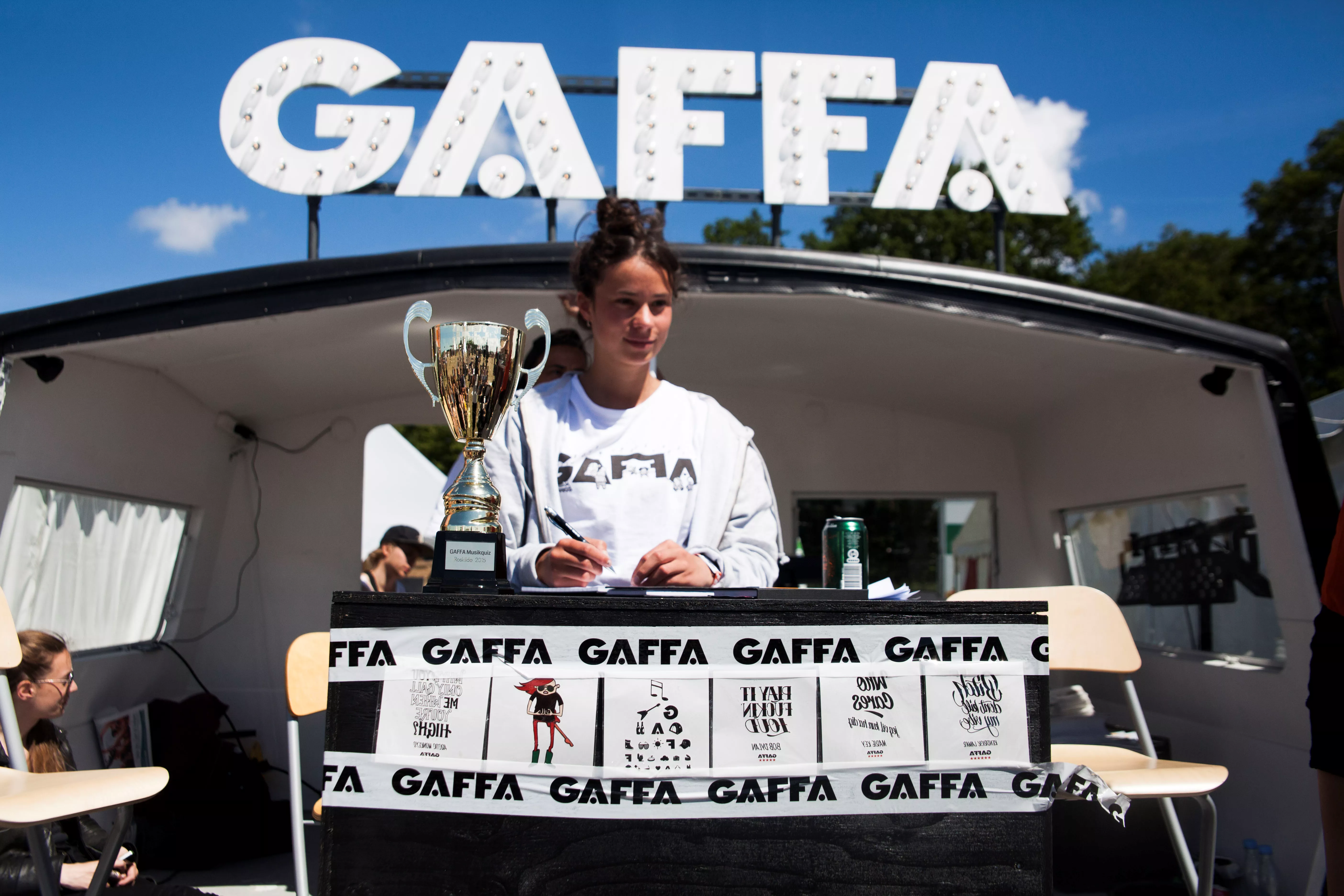 I den slumrende sommersol har en mindre skare stimlet sig sammen foran GAFFAs lille campingvogn. Med halvlunkne pilsner i skødet og solbrillerne på sned, kvitterer de med klapsalver, da quizmaster Nanna Jenner læser dagens temaer op: Indie og Eurovision Song Contest. Særligt den sidste kategori vækker stor begejstring. Dagens musikquiz er blevet skudt i gang.