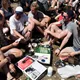 Da de første spørgsmål er læst op, kommer tillidstesten. Her bytter deltagerne svarskemaer og sætter flueben ved de rigtige svar. "Arh, pis. Det vidste jeg jo godt," siger én skuffet til sin sidekammerat, mens en anden smiler bredt og gnider sig i hænderne.