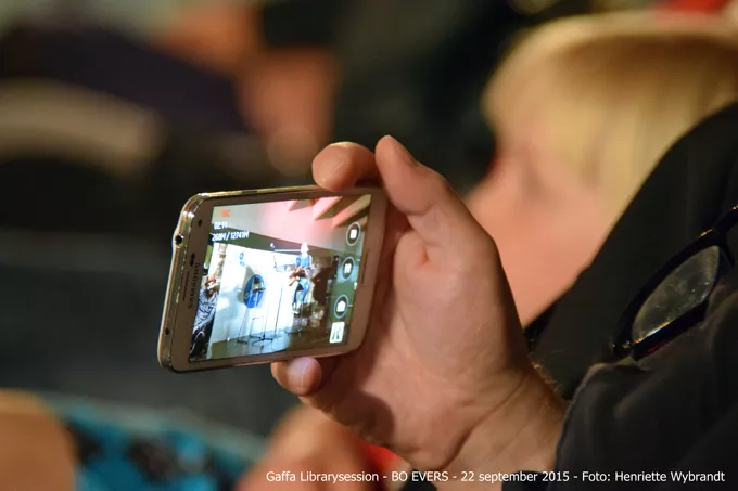 På biblioteket lægger han ud med en nyskrevet sang inspireret af at være handlingslammet, når der sker så meget i verden.