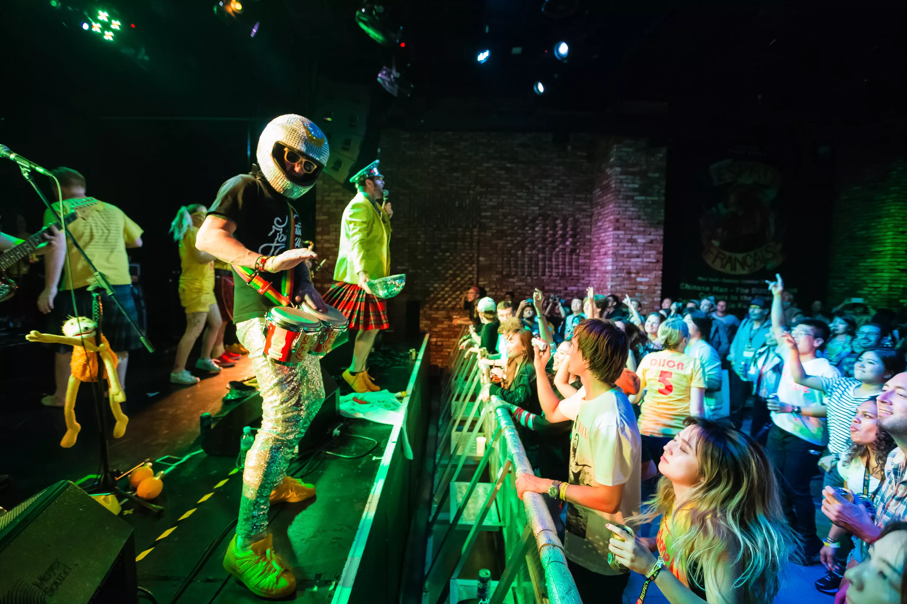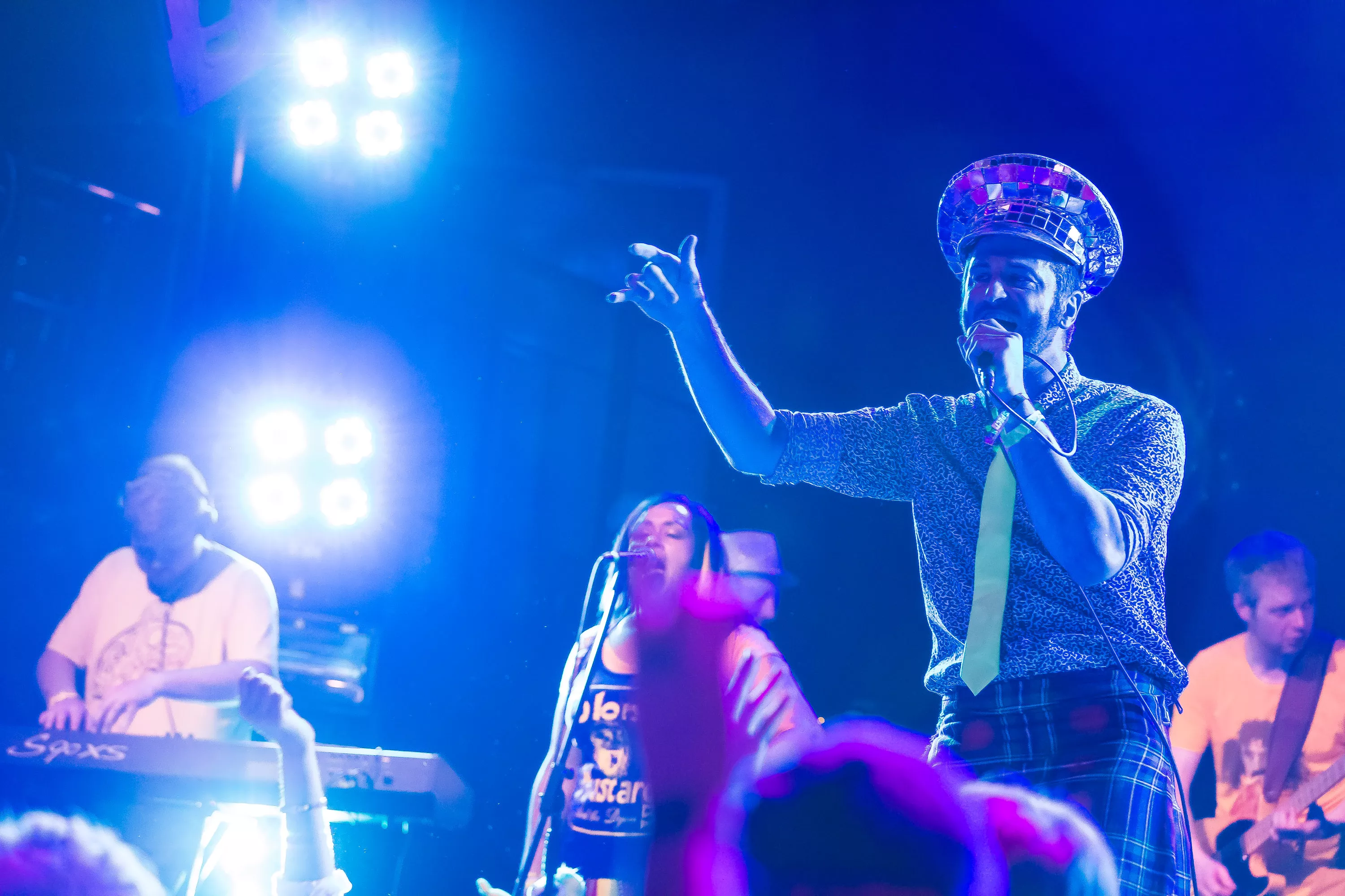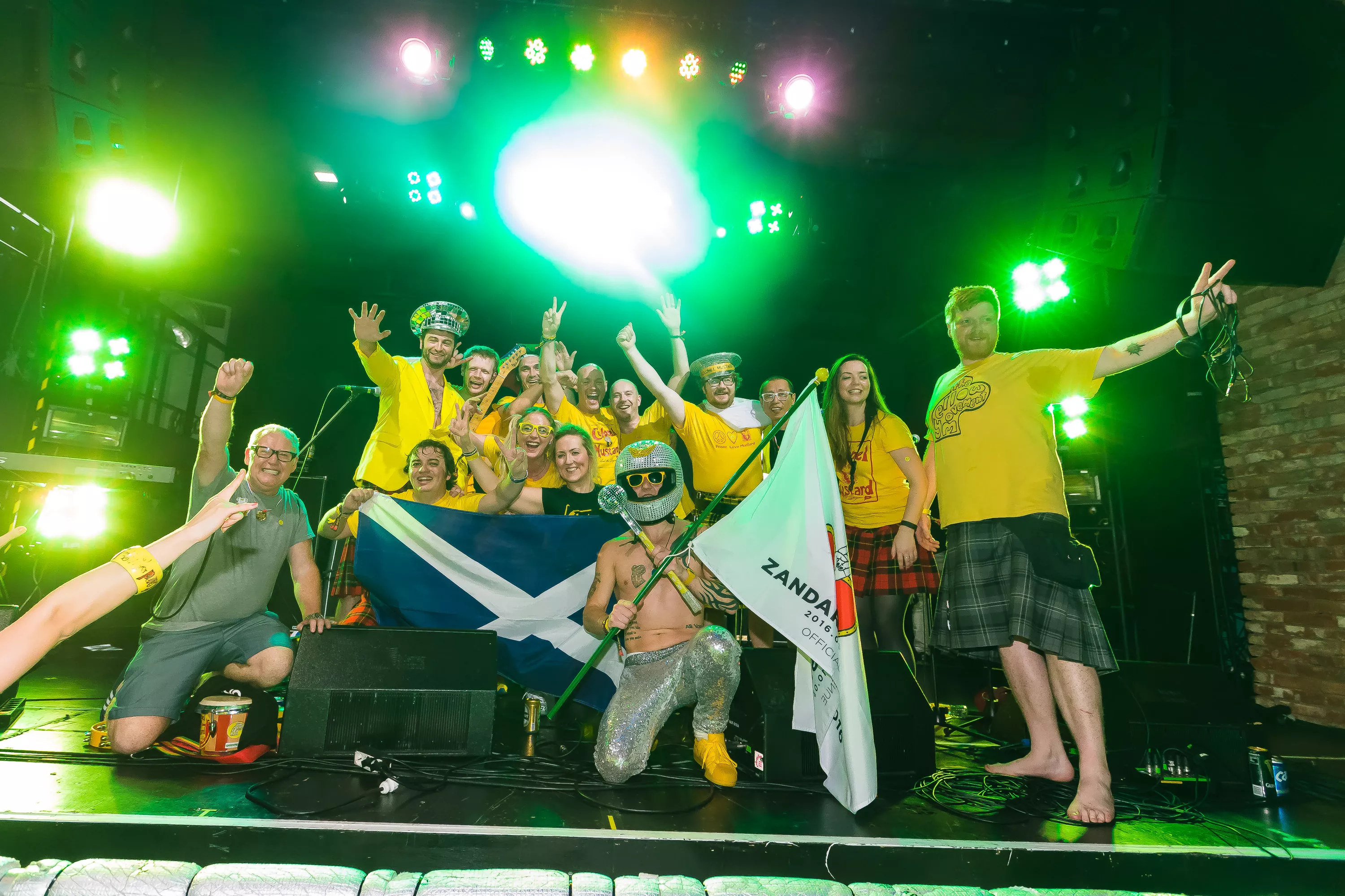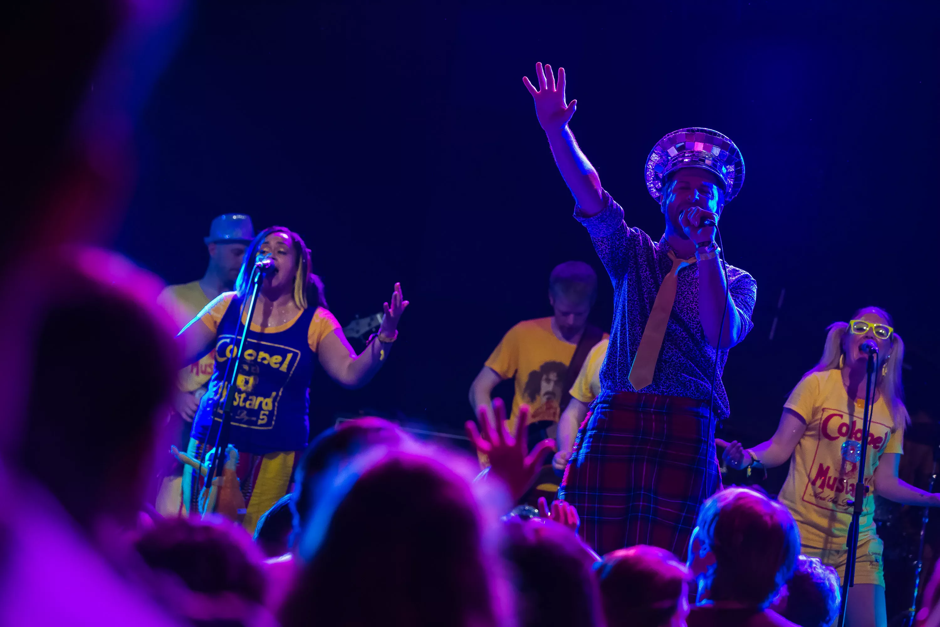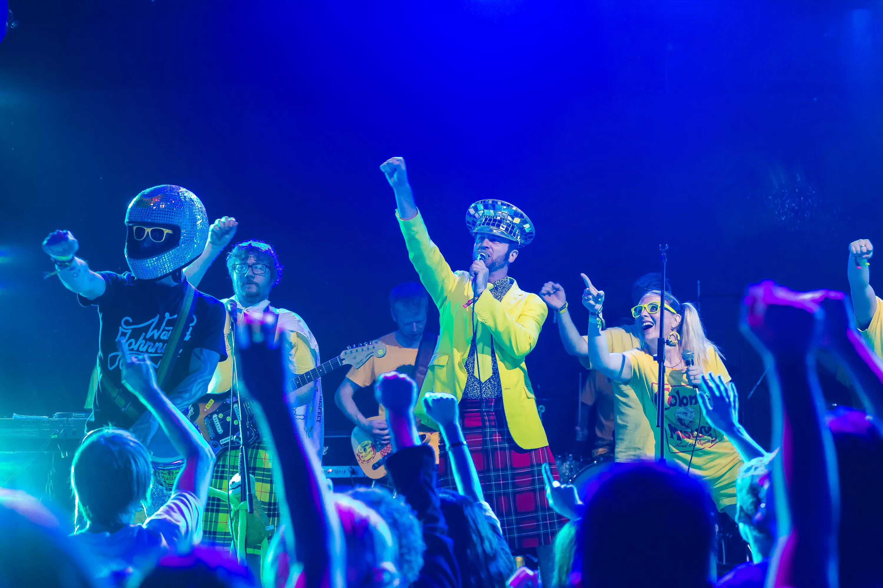 Derefter går turen over til Muv Hall, hvor festivalens bedste partyband er klar på scenen. De kommer fra Skotland og hedder Colonel Mustard & The Dijon 5. Bandet tæller hele 13 mænd/kvinder på scenen plus en overgearet danser i sølvkostume. Forsangeren har en discokugle som hat, og ellers har alle gule sennepskostumer. Musikalsk er stilen en ukontrolleret blanding af soul, disco og dance med referencer til alt fra Happy Mondays til James Brown, Primal Scream, George Clinton, Frank Zappa og andet godt. Det kæmpe band formår på ingen tid at få hele salen omdannet til et sydende fest inferno, hvor publikum og band er lige gode om at skabe koncerten, være på scenen og lave kække danse moves. Der er en uhørt fællesskabsfølelse i salen, og det er et af bedste festorkestre, som jeg nogensinde har set. Ganske forrygende!