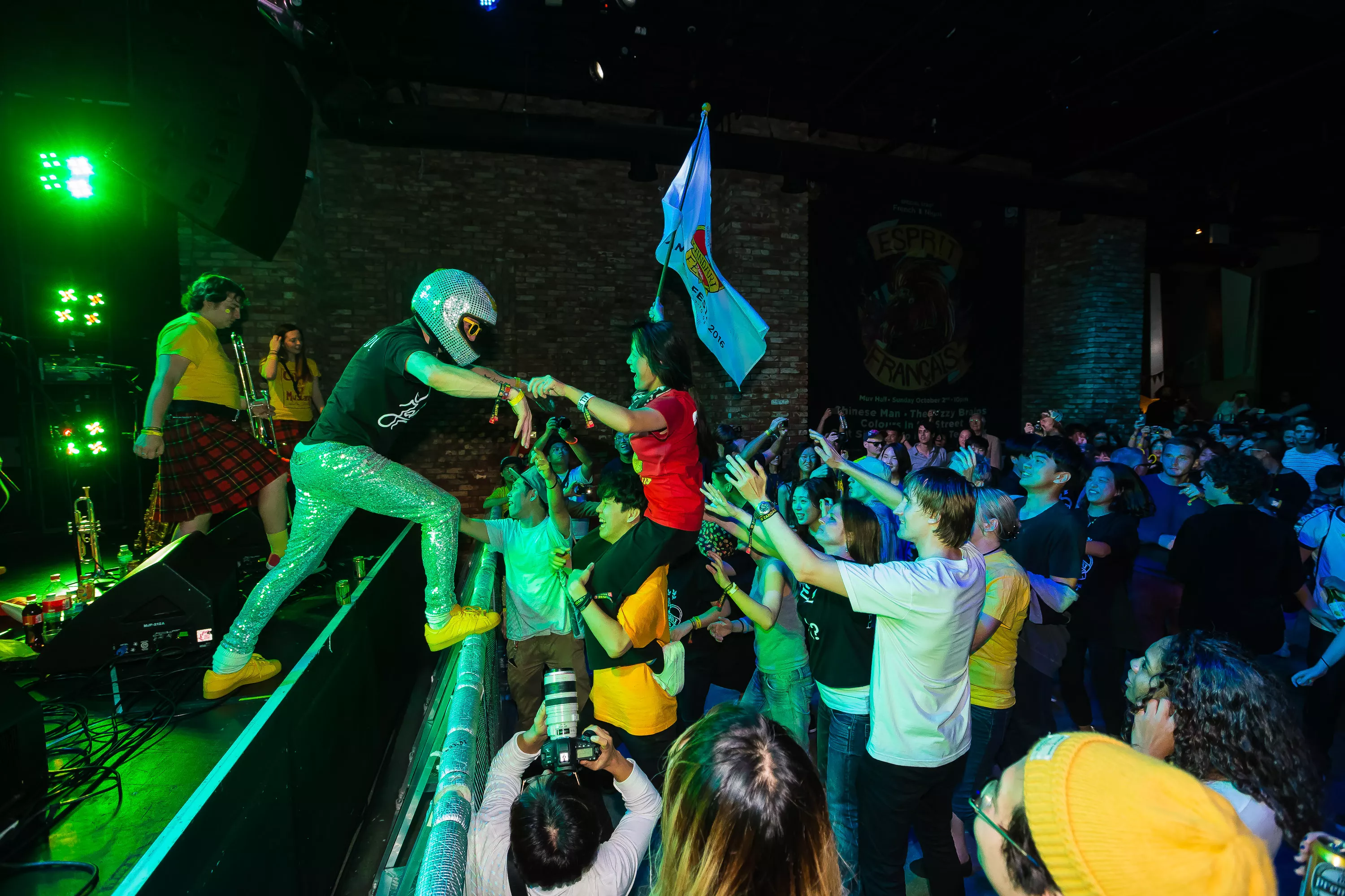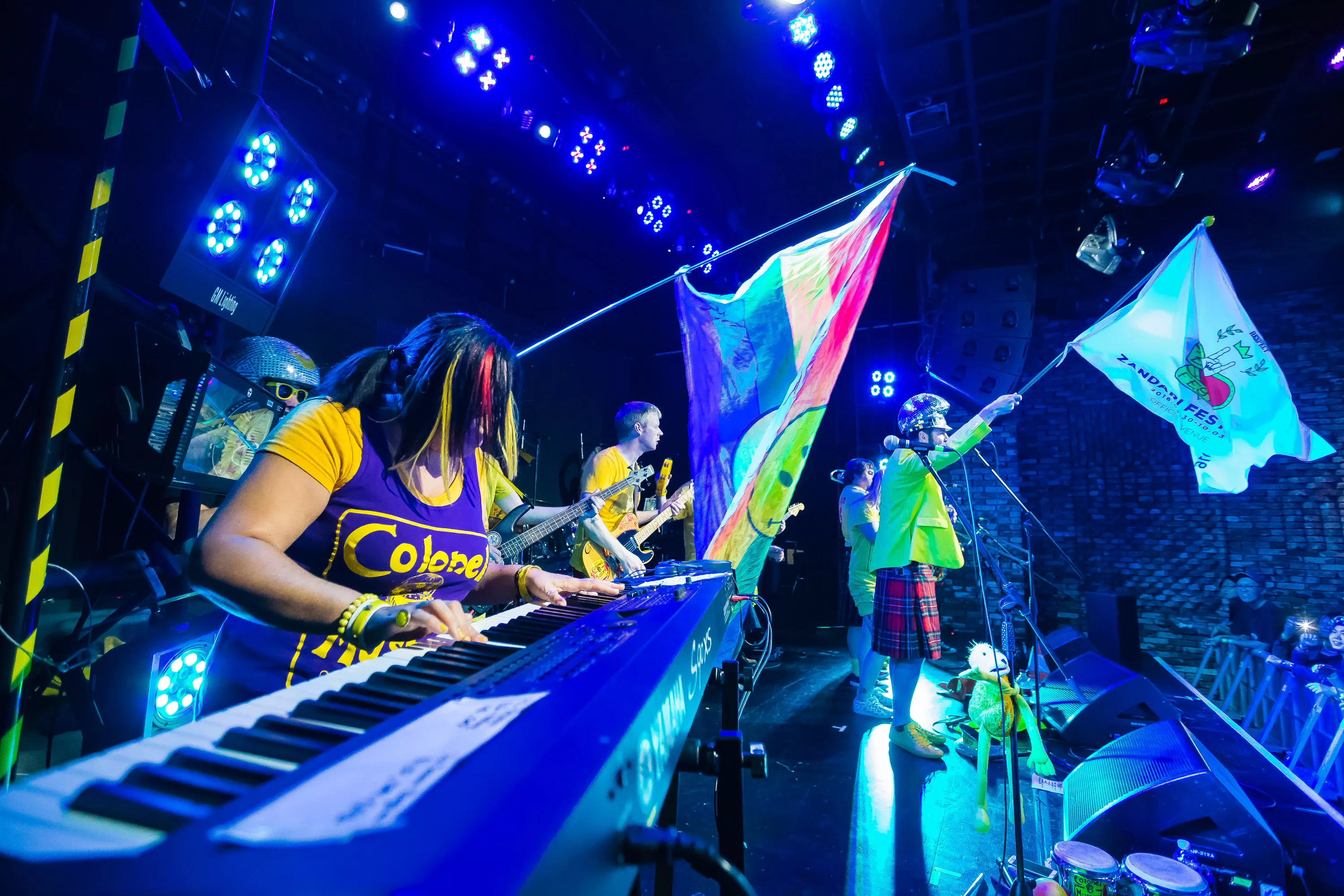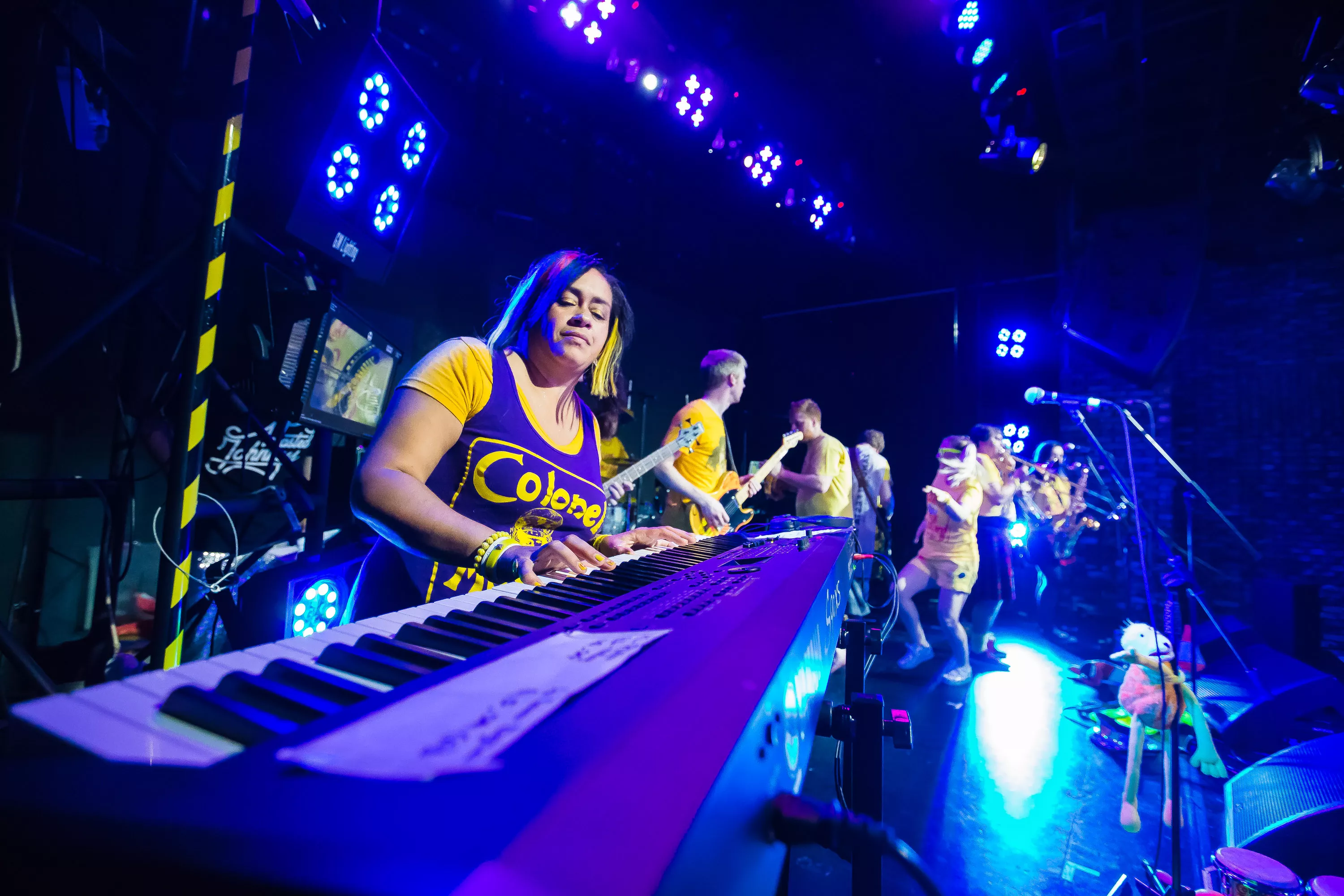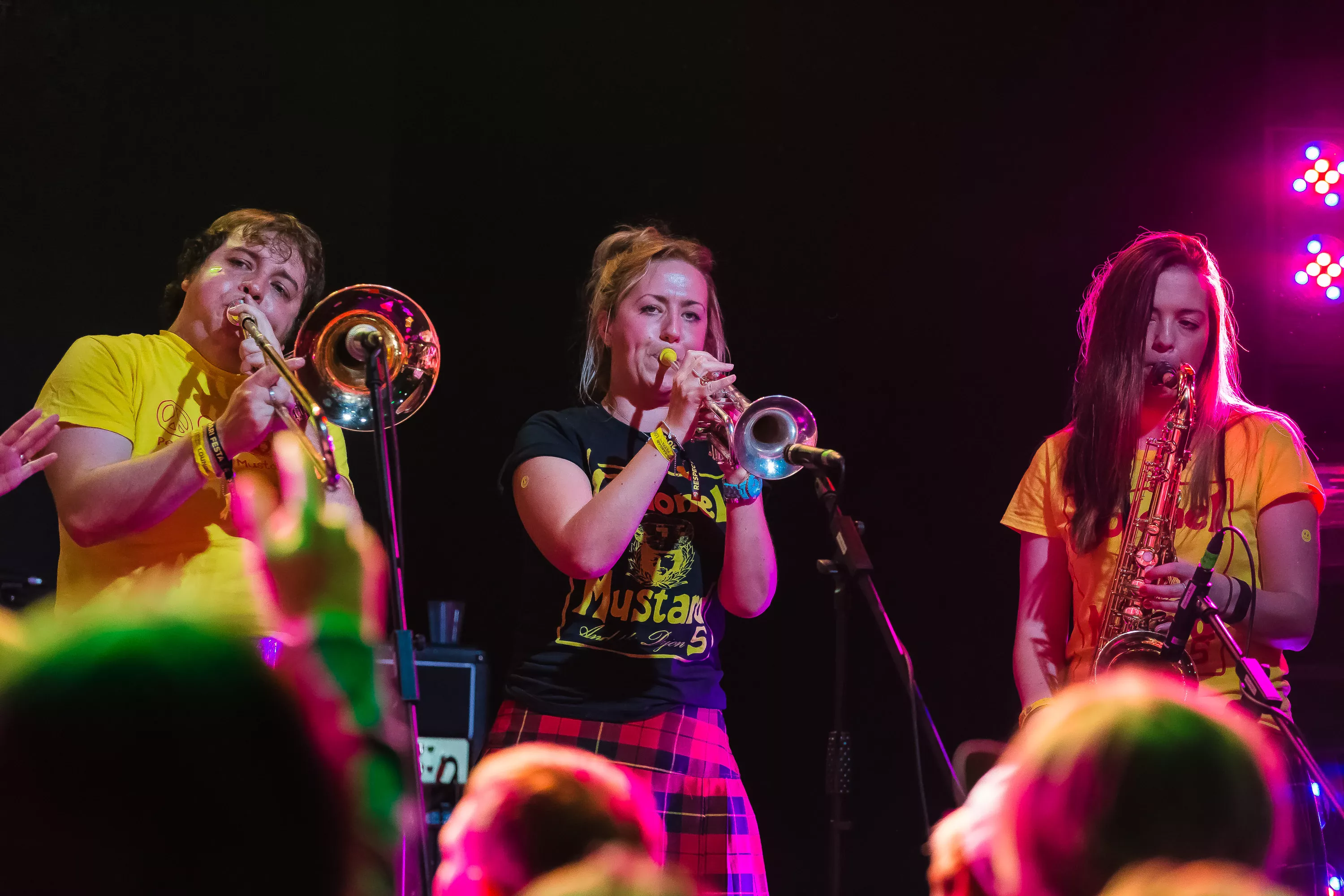 Derefter går turen over til Muv Hall, hvor festivalens bedste partyband er klar på scenen. De kommer fra Skotland og hedder Colonel Mustard & The Dijon 5. Bandet tæller hele 13 mænd/kvinder på scenen plus en overgearet danser i sølvkostume. Forsangeren har en discokugle som hat, og ellers har alle gule sennepskostumer. Musikalsk er stilen en ukontrolleret blanding af soul, disco og dance med referencer til alt fra Happy Mondays til James Brown, Primal Scream, George Clinton, Frank Zappa og andet godt. Det kæmpe band formår på ingen tid at få hele salen omdannet til et sydende fest inferno, hvor publikum og band er lige gode om at skabe koncerten, være på scenen og lave kække danse moves. Der er en uhørt fællesskabsfølelse i salen, og det er et af bedste festorkestre, som jeg nogensinde har set. Ganske forrygende!
