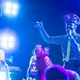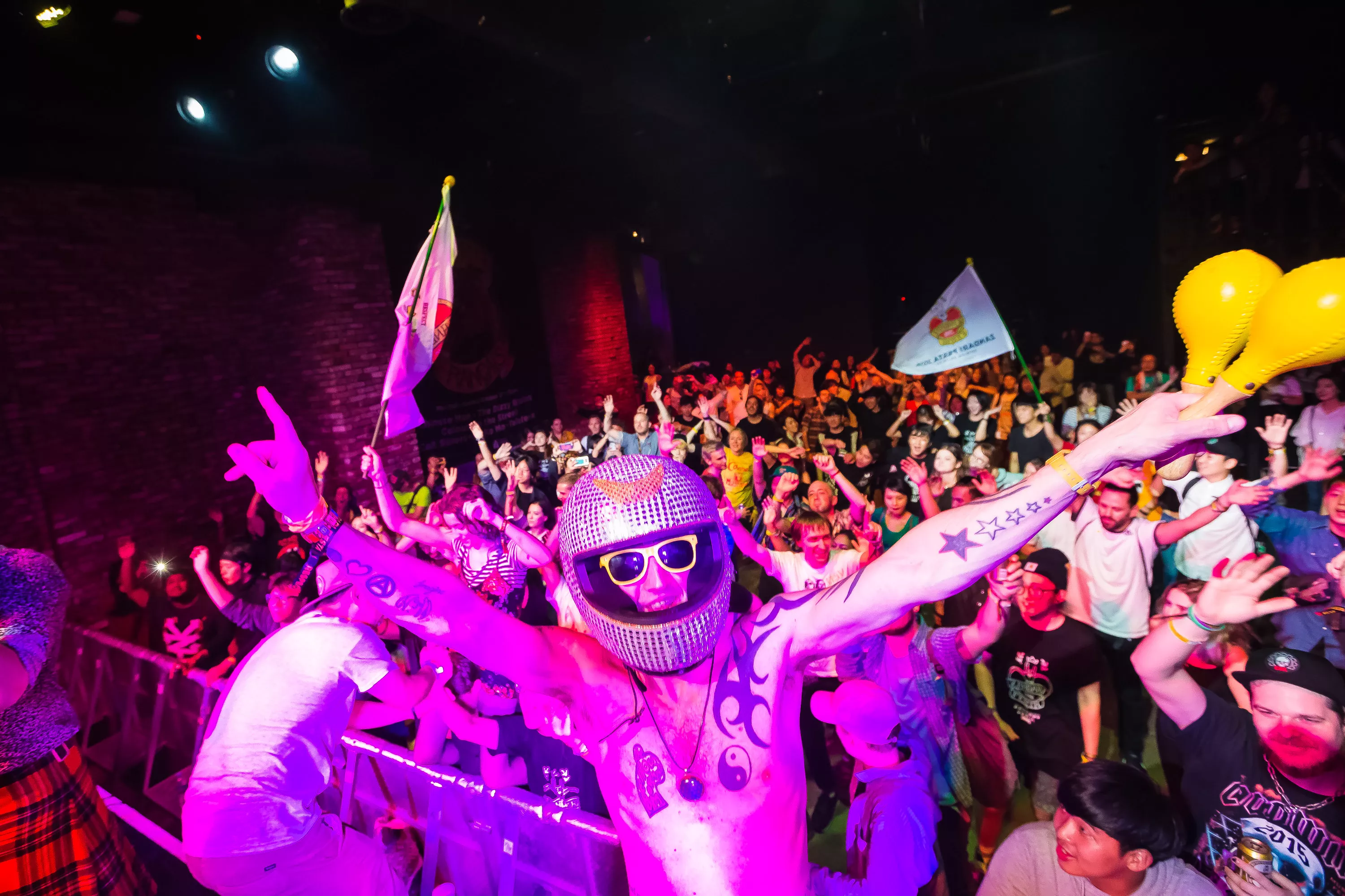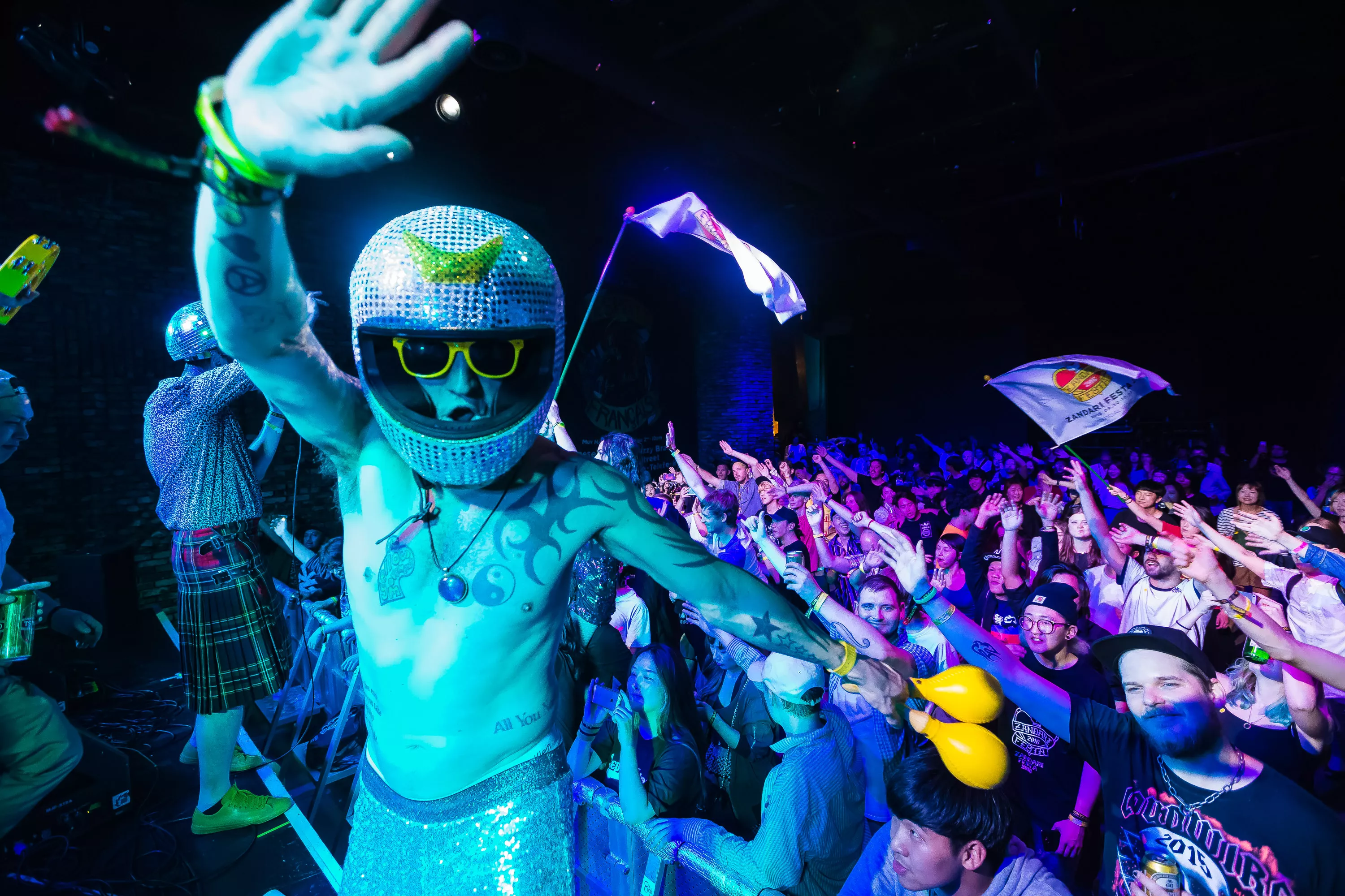 For at ryste tømmermændene af sig starter lørdagen med en tur i den lokale koreanske sauna, hvor man splitterravende hopper i forskellige varme hot tubs og får gårsdagens alkohol fordampet. Senere er det tid til en velvoksen koreansk bbq tilsat godt med soju, der er koreansk brændevin, og som bliver drukket konstant af alle herovre. Første musikstop er på festivalens fedeste venue Club Freebird, der ligger dybt nede i en kælder i et stort ovalt rødt lokale, der minder om en underjordisk hule. Her spiller den totalt aparte koreanske trio Tirikilatops. Bandet er iklædt røde grønsagskostumer, selvlysende halloween-masker og store smileys, mens pigen i front synger om alt fra sneglefester til spiondelfiner, UFOer og andre umulige emner tilsat forvrængede elektroniske beats og en nasal lillepigestemme. Det er bestemt mere bizart og underholdende end godt, og jeg kan kun anbefale, at man selv googler bandet og lytter med.