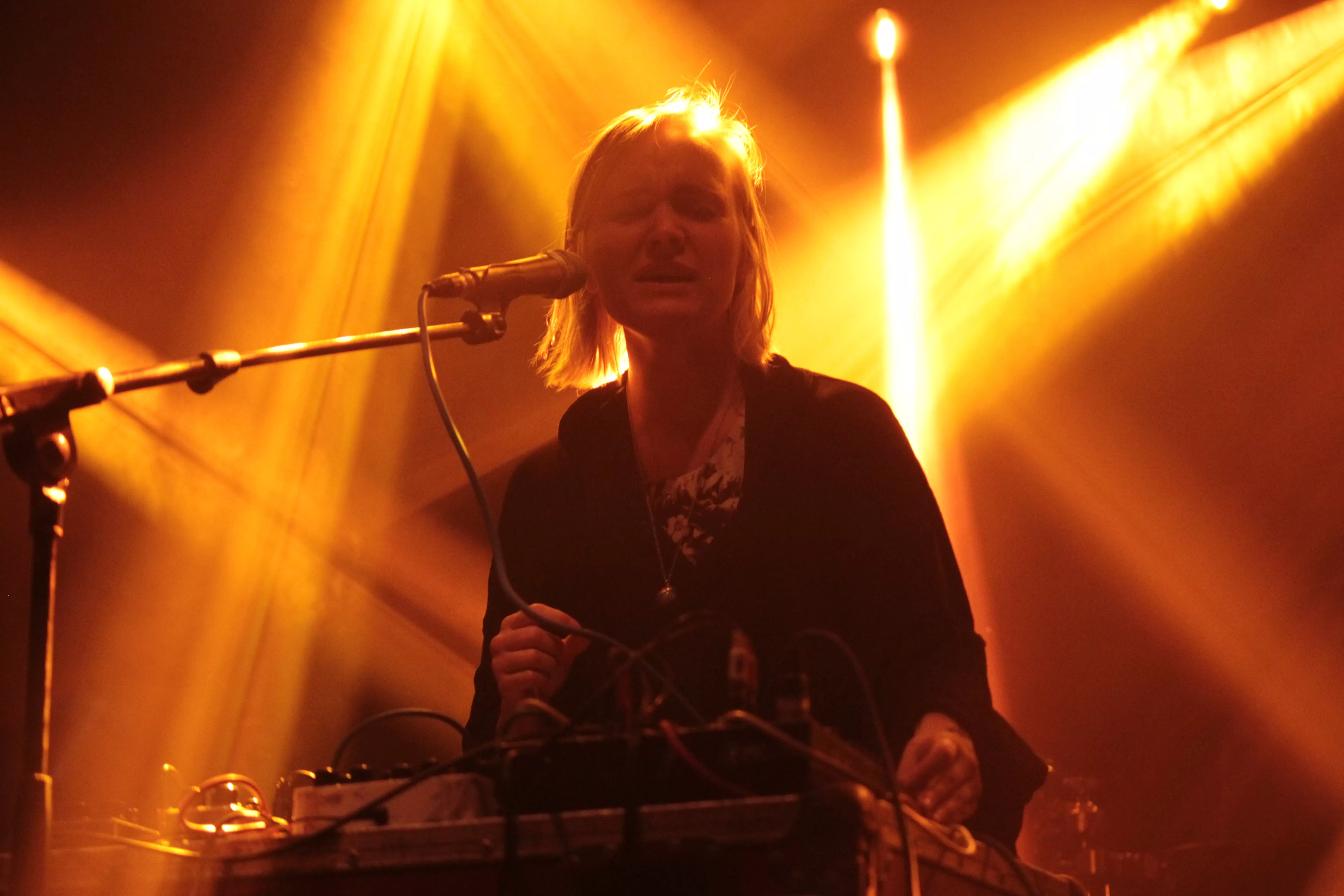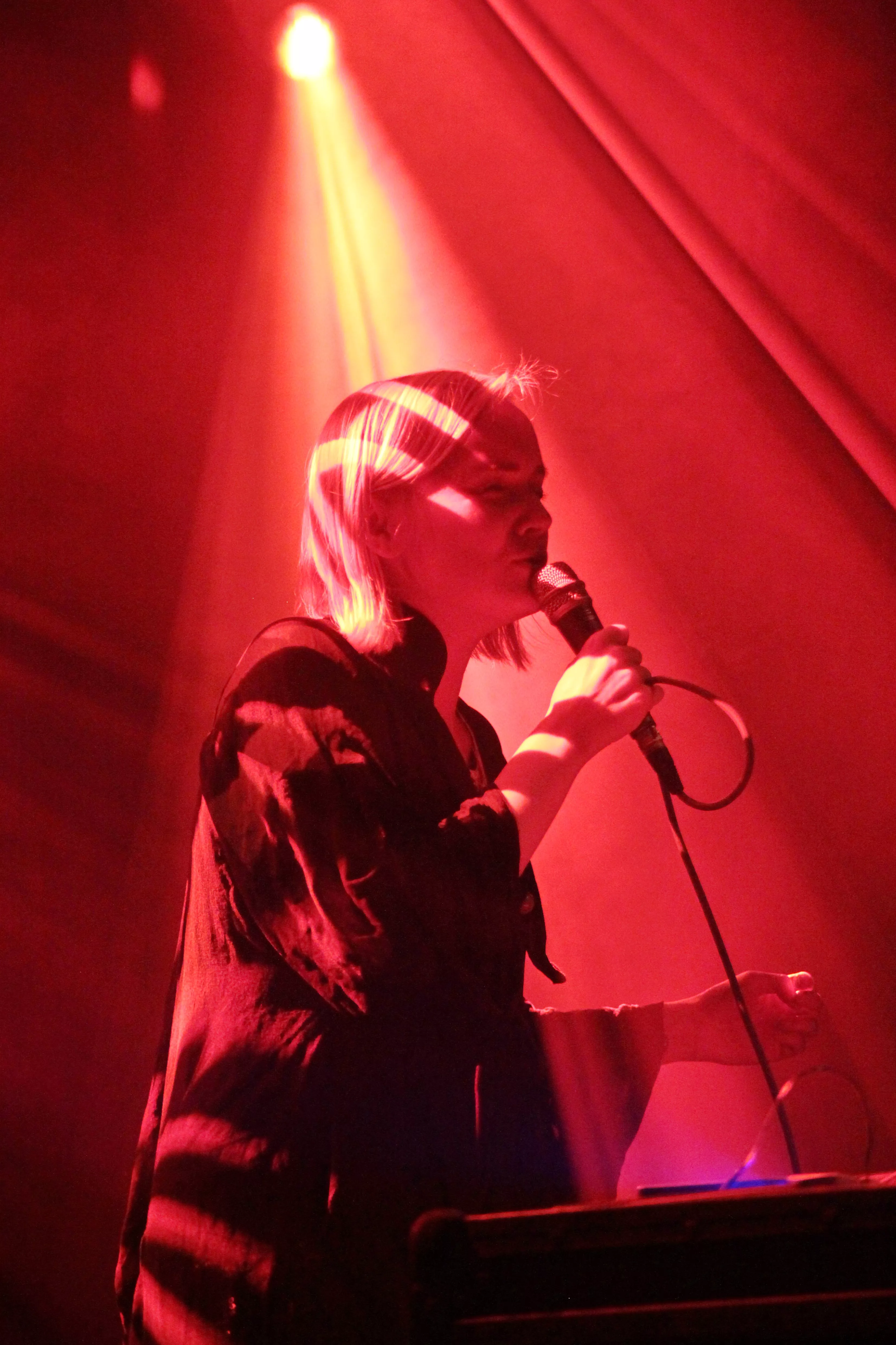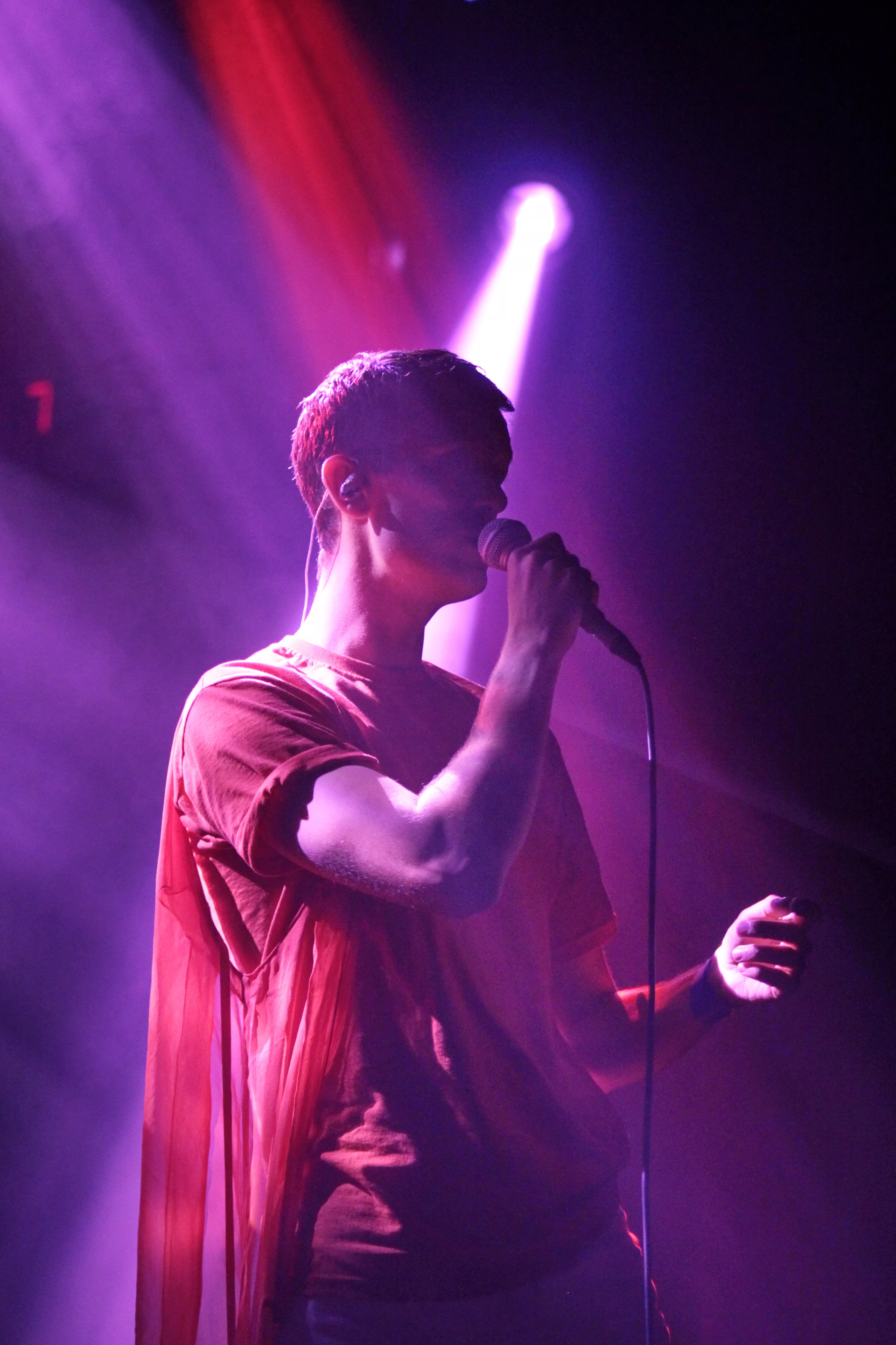 Første navn på scenen er finske Ringa Manner, som under aliaset The Hearing har turneret massivt over hele verden, siden hendes debutalbum udkom i 2013. Musikken er simpel, enkel, hudløs og yderst melodisk electropop tilsat en helt ren og klokkeklar vokal, som hun flere gange looper undervejs og bruger som fantasifulde ekko effekter i numrene. The Hearing er helt alene på scenen, og det kræver stort mod og teknisk snilde at stille sig op fange en hel sal, som i forvejen ikke kender hende. Det lykkes dog uden problemer, og de stemningsfulde og billedskabende sange fortryller det lyttende publikum, som nysgerrigt vugger med til de bløde elektroniske toner. The Hearing synger nærmest desperat om ”The summer is gone”, og man kan fornemme, at publikum synes, der er noget både dragende og eksotisk over det mørke nord med de uendelige mørke vintre. Seancen slutter med, at hun sætter sig på hug på scenen, skriger i mikrofonen og abrupt stopper sidste nummer.