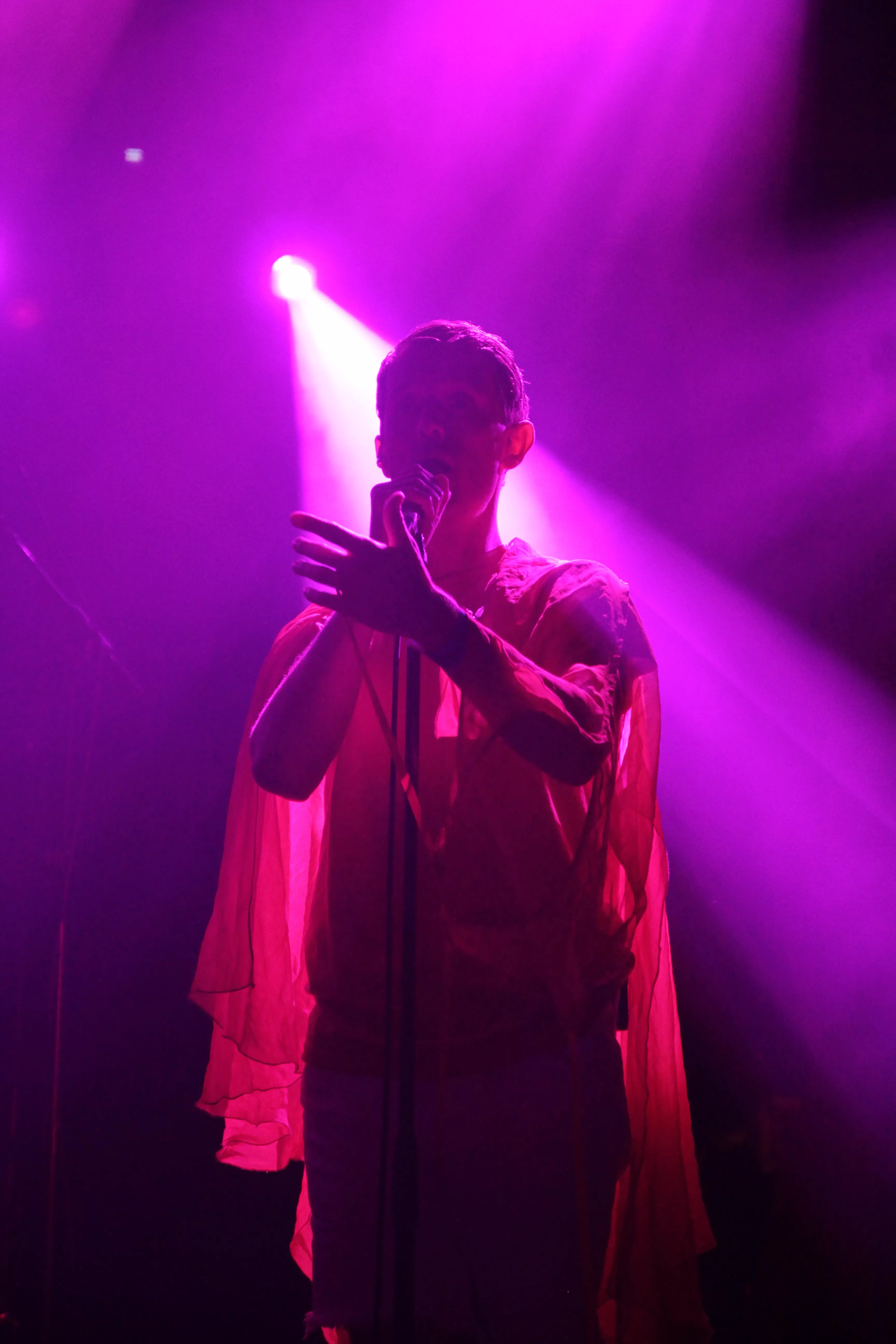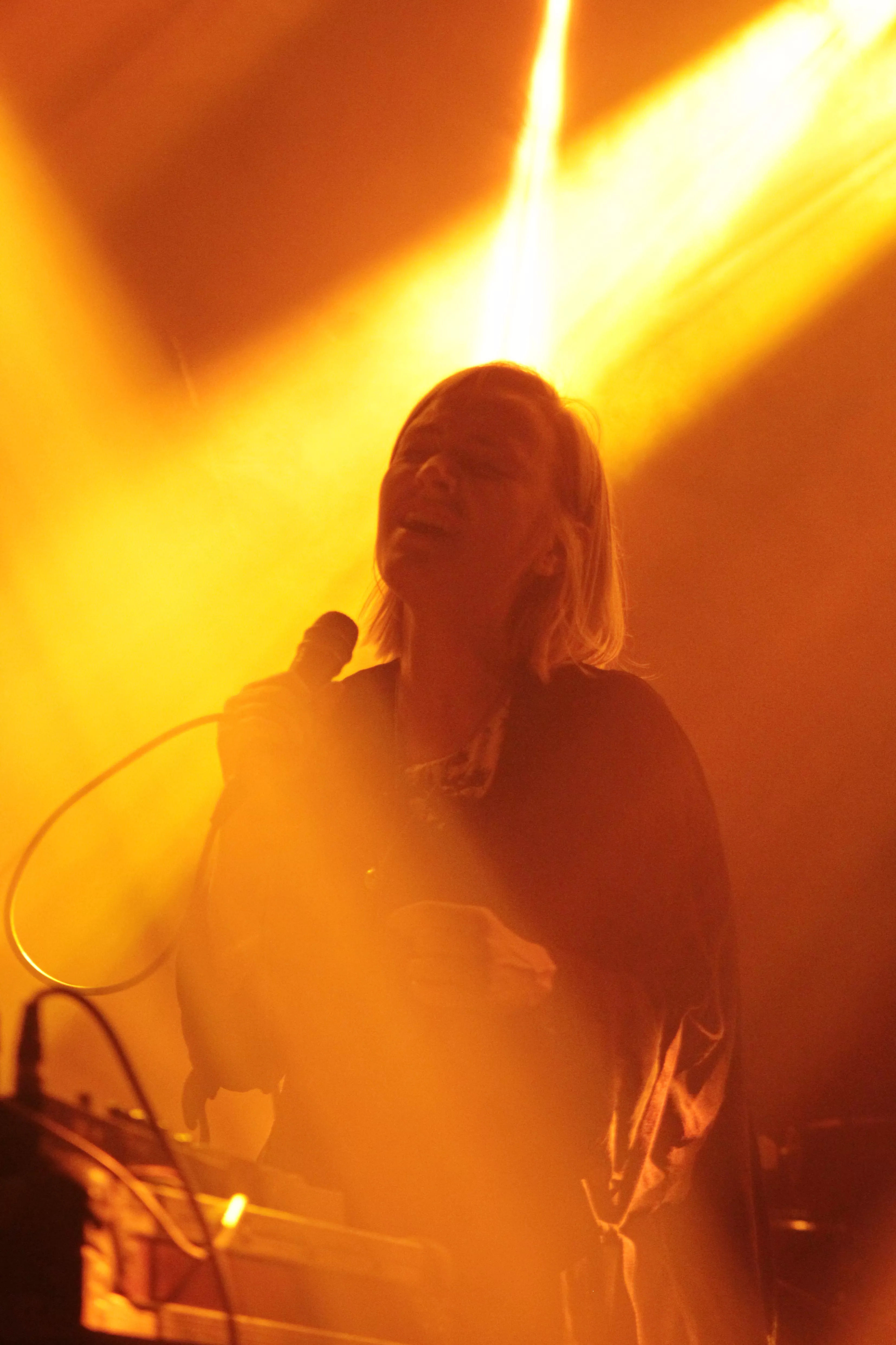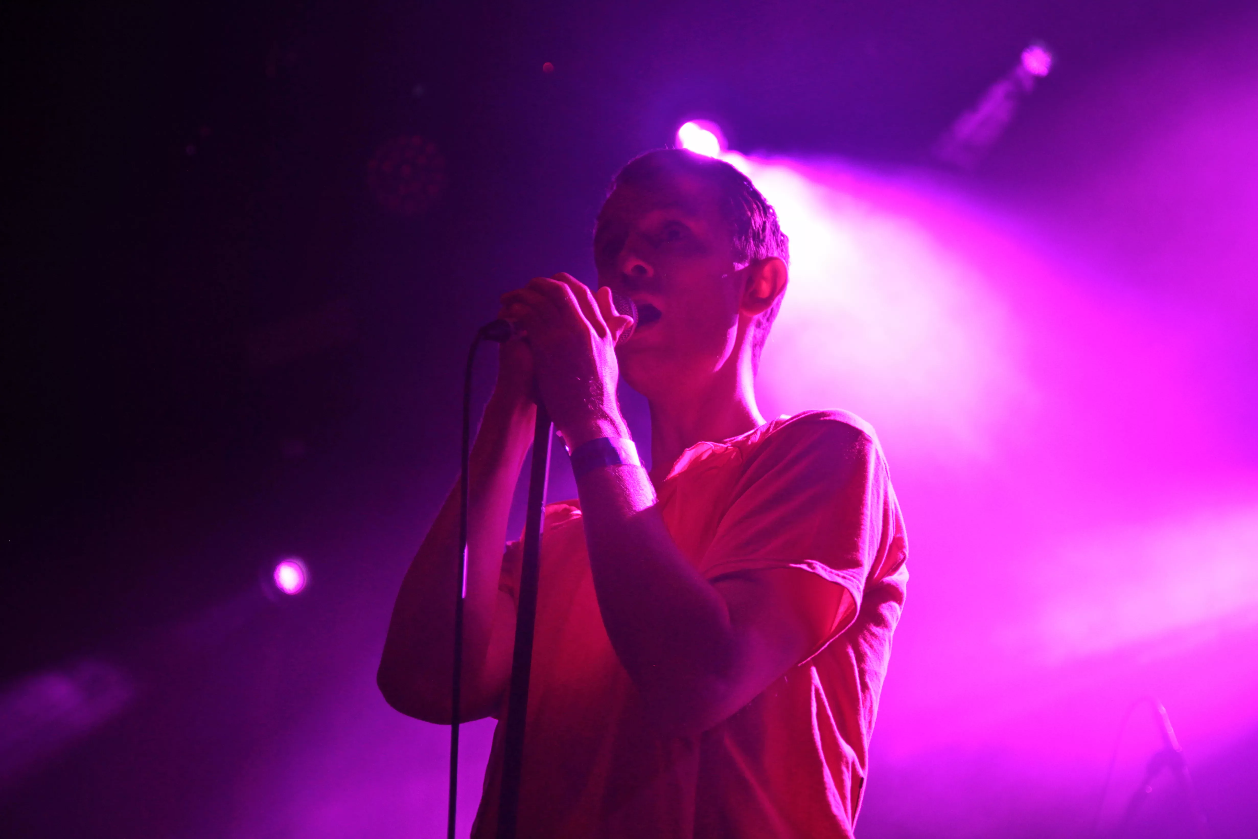 Første navn på scenen er finske Ringa Manner, som under aliaset The Hearing har turneret massivt over hele verden, siden hendes debutalbum udkom i 2013. Musikken er simpel, enkel, hudløs og yderst melodisk electropop tilsat en helt ren og klokkeklar vokal, som hun flere gange looper undervejs og bruger som fantasifulde ekko effekter i numrene. The Hearing er helt alene på scenen, og det kræver stort mod og teknisk snilde at stille sig op fange en hel sal, som i forvejen ikke kender hende. Det lykkes dog uden problemer, og de stemningsfulde og billedskabende sange fortryller det lyttende publikum, som nysgerrigt vugger med til de bløde elektroniske toner. The Hearing synger nærmest desperat om ”The summer is gone”, og man kan fornemme, at publikum synes, der er noget både dragende og eksotisk over det mørke nord med de uendelige mørke vintre. Seancen slutter med, at hun sætter sig på hug på scenen, skriger i mikrofonen og abrupt stopper sidste nummer.