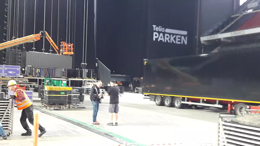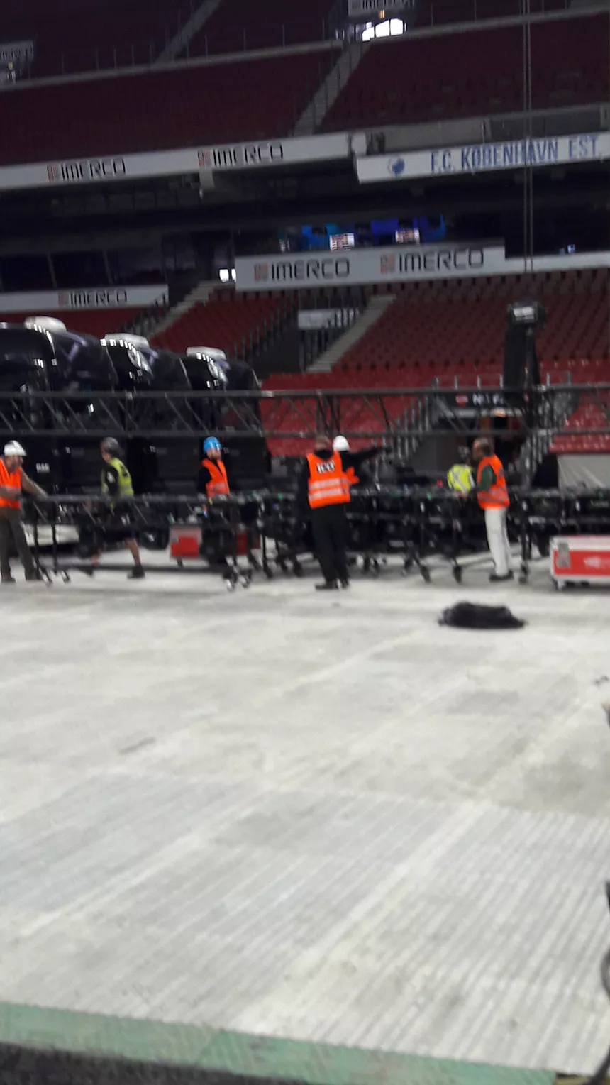 Det var i øvrigt vistnok en tour manager tilbage i ’69, som opfandt frasen om verdens største rock’n’roll-band – og siden er den ligesom bare hængt ved. Denne regnfulde mandag formiddag byder en af ophavsmandens nutidige kolleger så velkommen, midt på plænen i Telia Parken på Østerbro. Navnet er Dale Skjerseth, production director på den store sceneproduktion – som det hedder i fagsprog – og en garvet herre i faget.