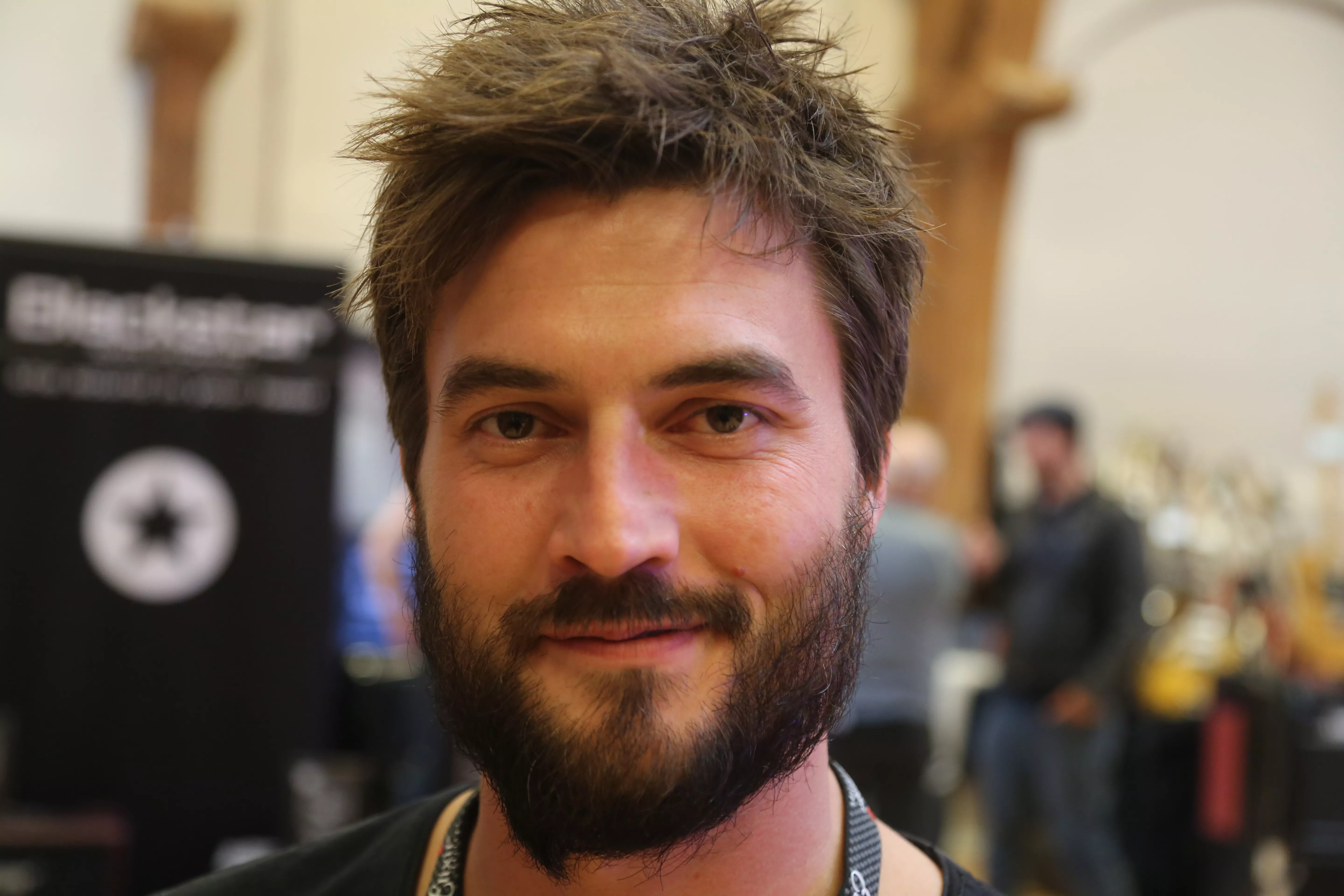 Jakob Rasmussen står i Luthman-standen, et firma som repræsenterer 80 mærker i Norden, inklusive kendte som guitarmærket Gibson og de særdeles populære nye forstærkere, Blackstar.