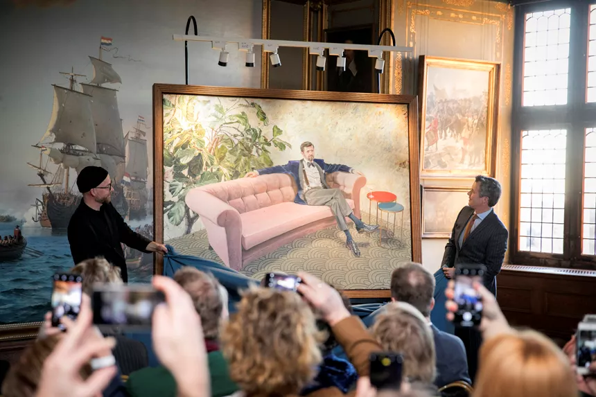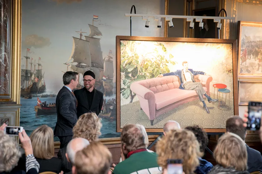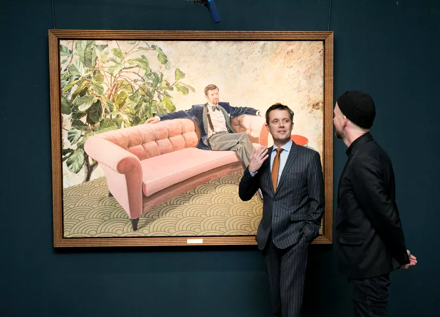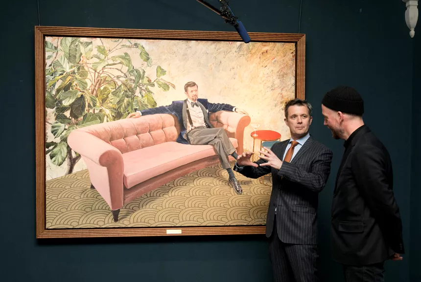 Det er Det Nationalhistoriske Museum på Frederiksborg Slot, der har bestilt portrættet, der viser Kronprinsen tilbagelænet i en sofa med en drink inden for rækkevidde.
