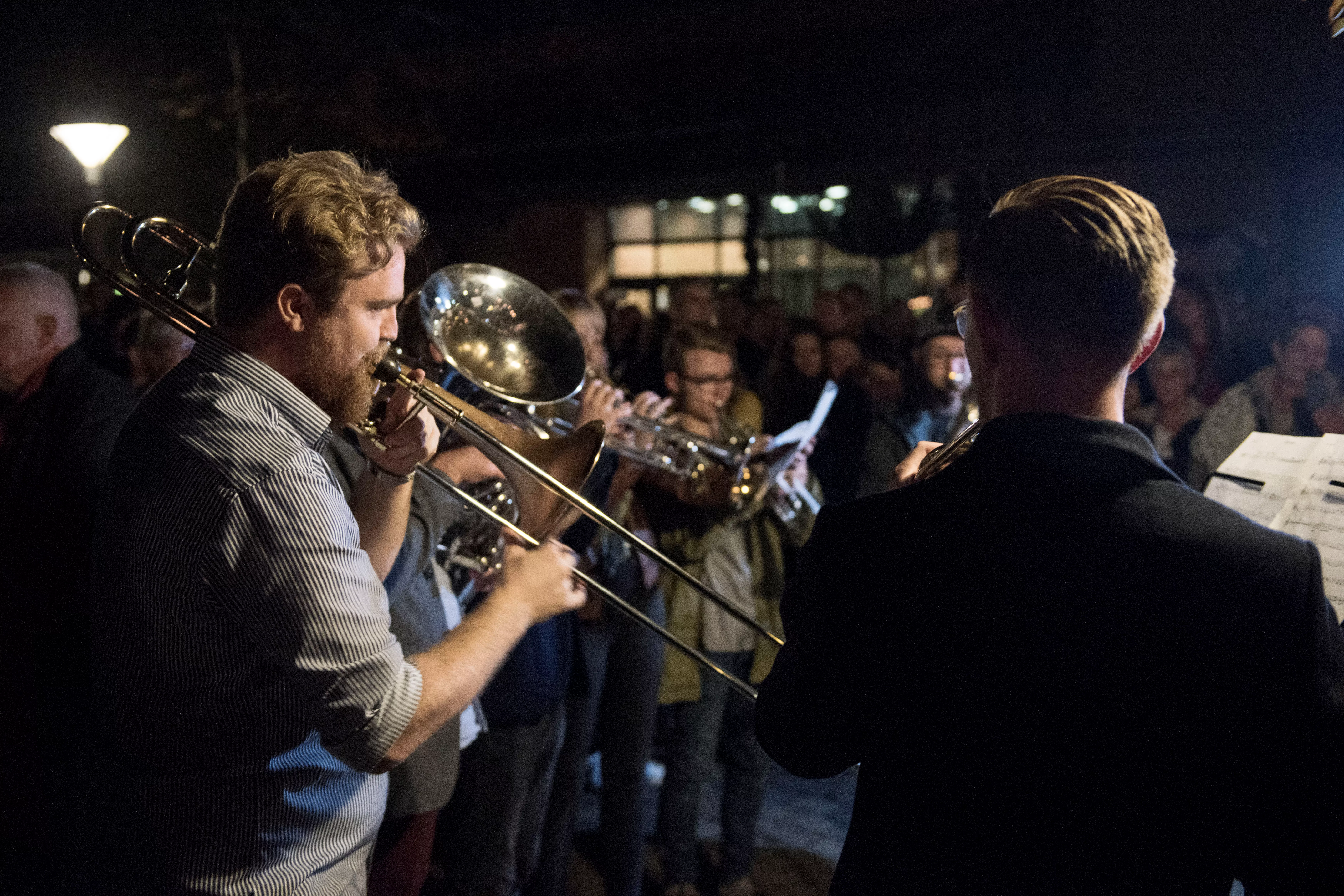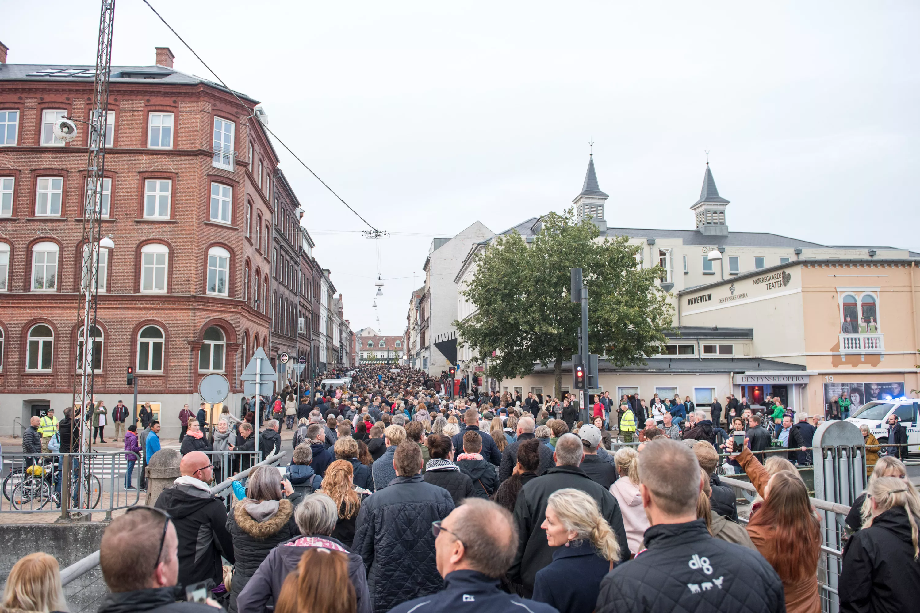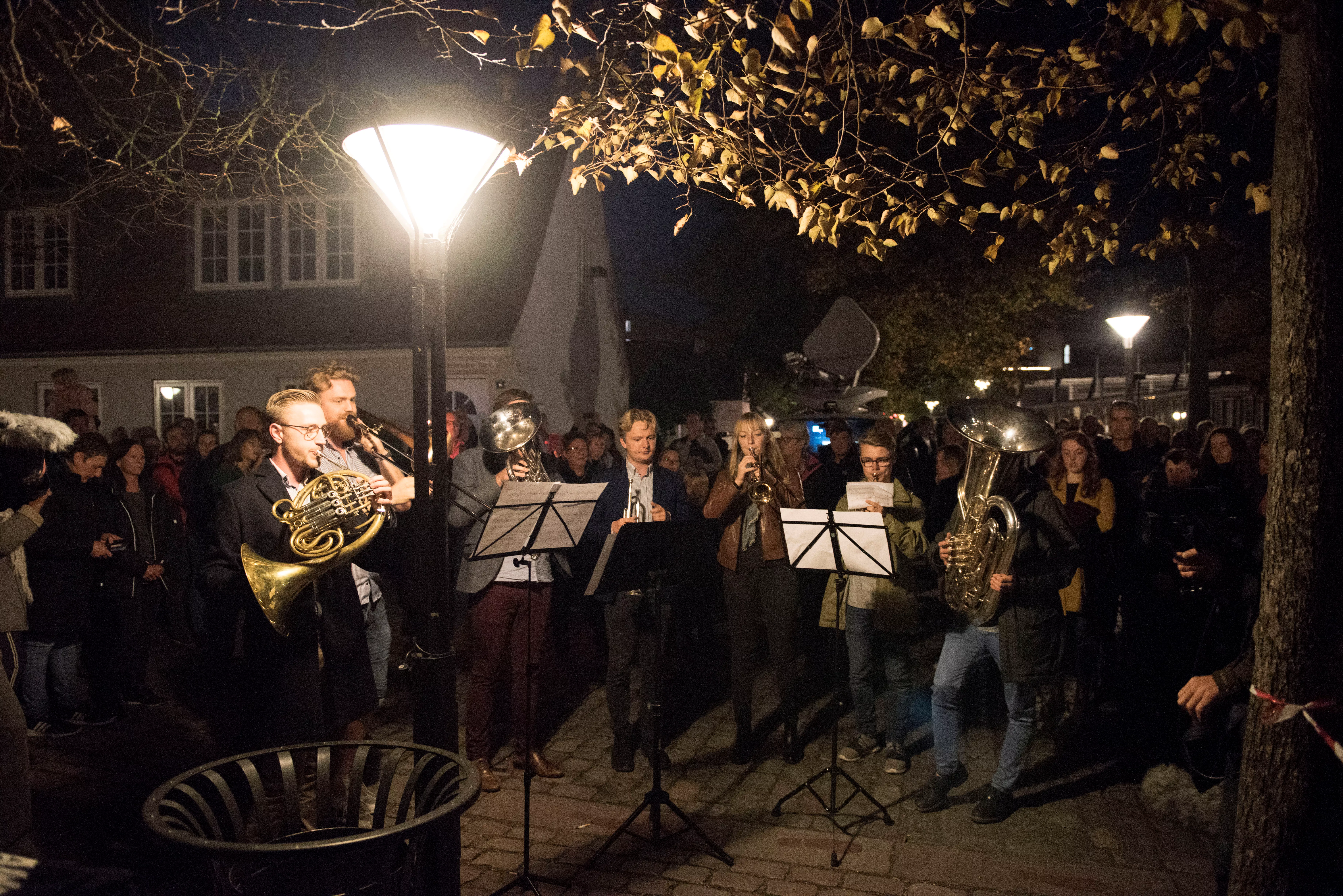 Begge steder var flere tusinde mennesker mødt op. I Odense begyndte optoget i Munke Mose, gik videre over en mindekoncert på Amfipladsen og sluttede på Sortebrødre Torv, tæt på Larsens hjem og hans andet hjem, Lørups Vinstue. På Sortebrødre Torv blev Larsens klassiker "Om lidt" afsunget, og der blev holdt et minuts stilhed, inden nationalskjalden blev hyldet med en stor klapsalve.