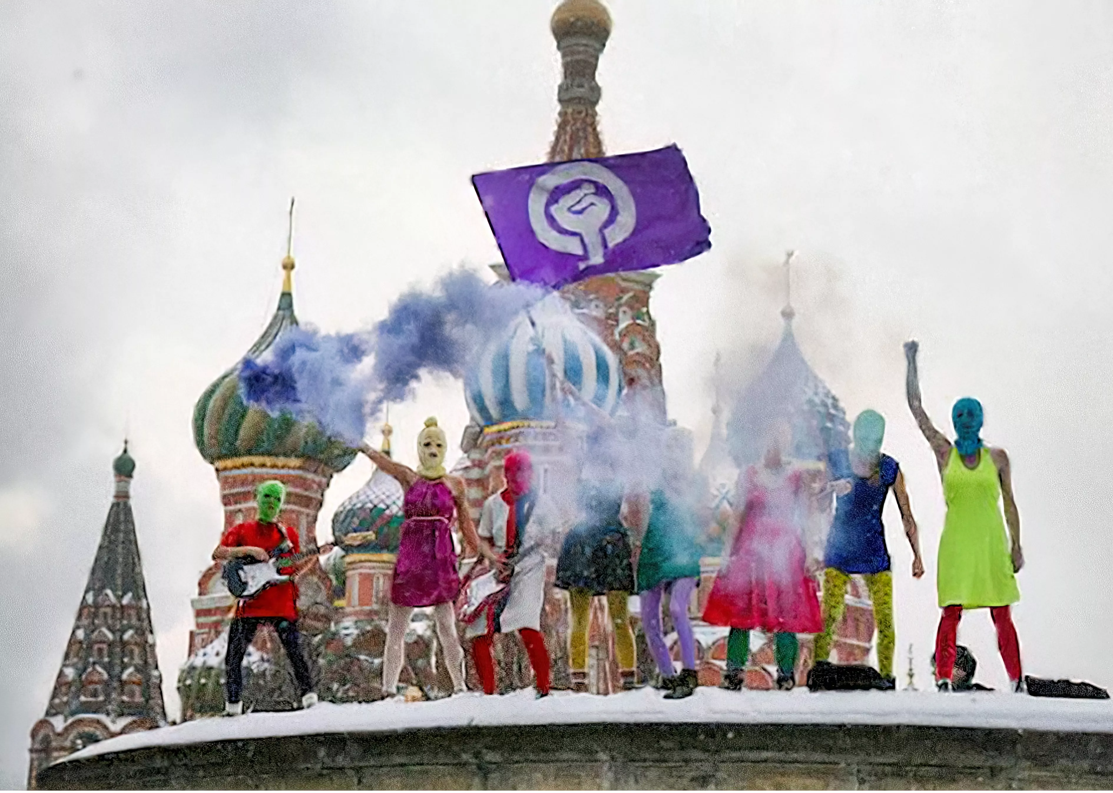 Det feministisk-aktivistiske kunstkollektiv Pussy Riot opstod i Moskva i 2011 og har siden markeret sig med spontane, ikke-voldelige og modige protestaktioner vendt mod det russiske styre. Deres ”våben” er farvestrålende tøj, punkede protestsange og forklædninger og Pussy Riots årelange oprør mod det russiske styre står samlet set som noget af det stærkeste politiske kunst i det 21. århundrede.