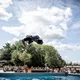 - Samarbejdet med Musikhuset betød blandt andet, at vi fik mulighed for at finde ud af, hvordan Grim ser ud, når det pakkes ned i en trailer og sendes et helt andet sted hen. Vi klædte Musikhuset i kunstgræs, træflis, graffiti-vægge og håndbyggede elementer. Og det håndbyggede er virkelig en del af charmen hos os. Der findes sikkert nogen, der kunne gøre det bedre, men det er uvæsentligt. Det er ligesom i Blinkende lygter og den restaurantanmeldelse, de får: De får én stjerne hver for at være sig selv og for at gøre sig umage, selvom maden er forfærdelig, griner Aage.